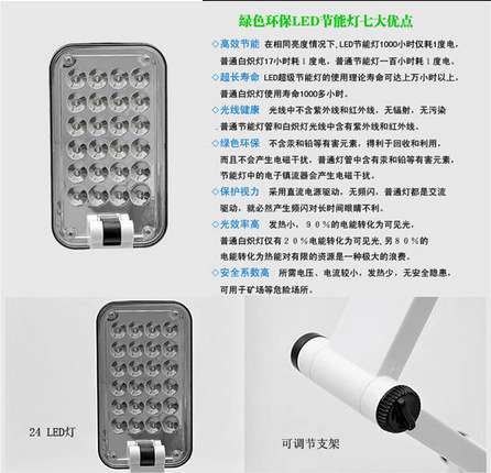 This product built-in long life rechargeable maintenance-free lead-acid battery of high capacity is 800 mah.Long life battery, 500 times more than used to charge and discharge cycles.Using energy saving, high brightness, long life of LED.Light intensity is optional.